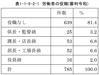 労働審判手続を利用する労働者の役職は役職なしが81.4%を占めています。
