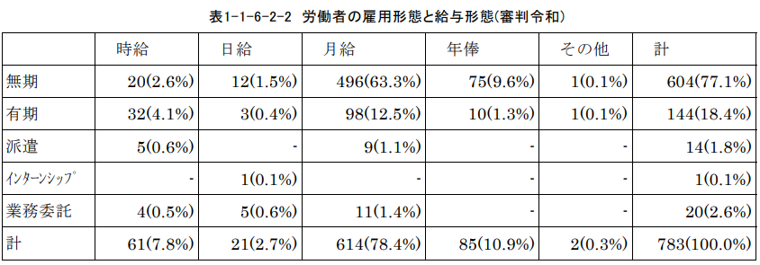 2(5) 労働審判手続を利用する労働者の雇用形態と給与形態について教えてください。