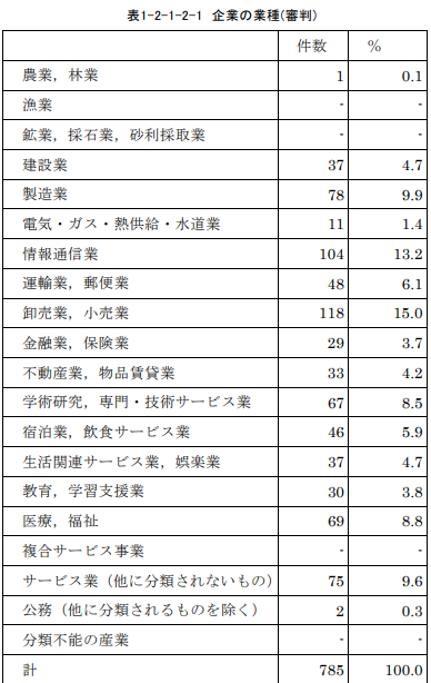 2(7) 労働審判手続における企業の業種について教えてください。