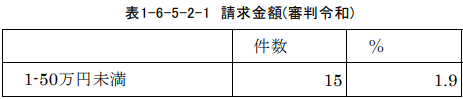 労働審判手続における請求金額は以下のようになっています。