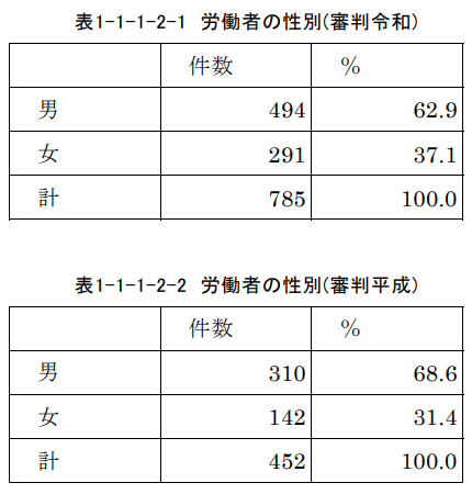 2(1) 労働審判手続を利用する労働者の性別割合について教えてください。