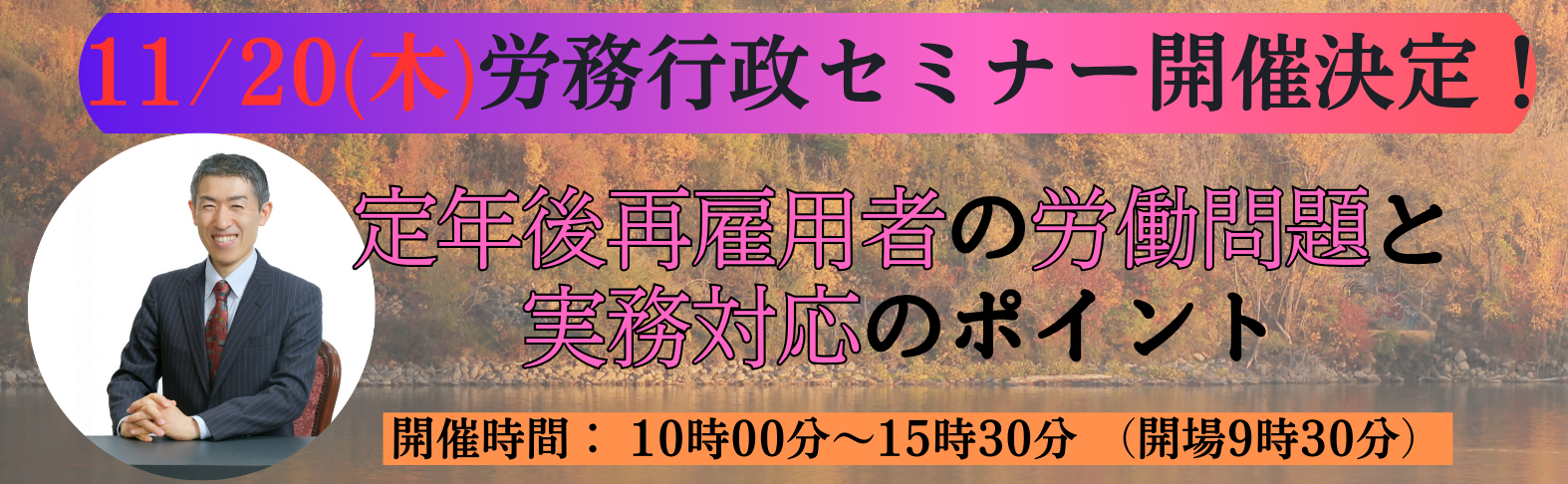 2025年11月20日(水) 労務行政セミナー開催のお知らせ(弁護士 田村裕一郎) 2025 10/15 セミナー 外部セミナー 2025年9月29日2025年10月15日 詳細はこちら セミナー 外部セミナー よかったらシェアしてね! URLをコピーしました! URLをコピーしました! コメント コメントする コメントをキャンセルコメント ※ 名前 ※ メール ※ サイト 次回のコメントで使用するためブラウザーに自分の名前、メールアドレス、サイトを保存する。