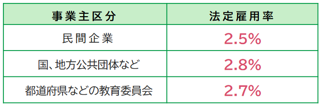 全ての事業主は、従業員の一定割合(=法定雇用率)以上の障害者を雇用することが義務づけられており、これを「障害者雇用率制度」といいます。